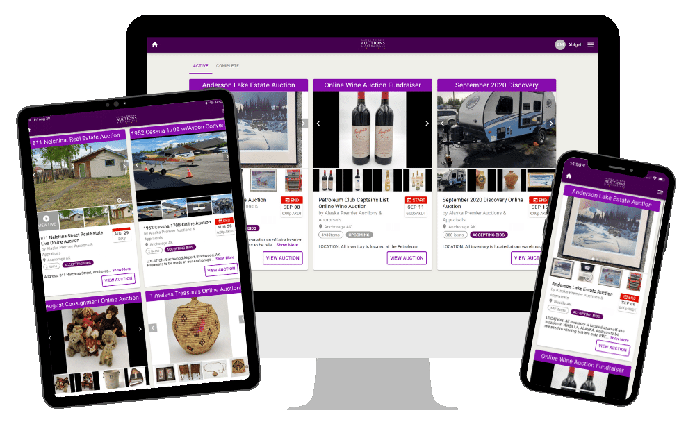 Current auctions can always be found under the Auctions tab at the top of our site, or if you want to visit the bidding platform without the website fluff you can do so at: bid.alaskapremierauctions.com