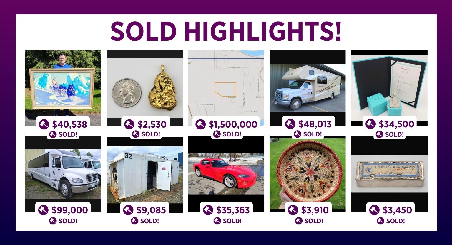 We sell Alaskana, antiques, collectibles, firearms, land & other real estate, coins & currency, Alaskan art, Native art, fine gold & silver jewelry, vehicles, RV’s, ATV’s, restaurant & other commercial equipment, fine wine & spirits, sporting goods, heavy machinery, and much more!